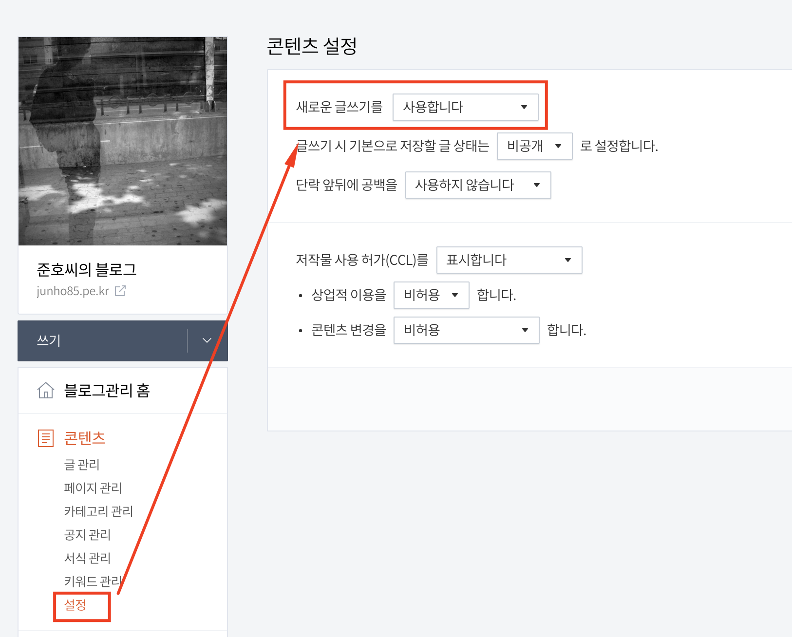 관리센터로 들어가서 콘텐츠 -> 설정 -> 새로운 글쓰기를 "사용합니다" 로 되어 있는데 만약 아직 새 에디터가 불편하다면 구 에디터도 사용 할 수 있다.