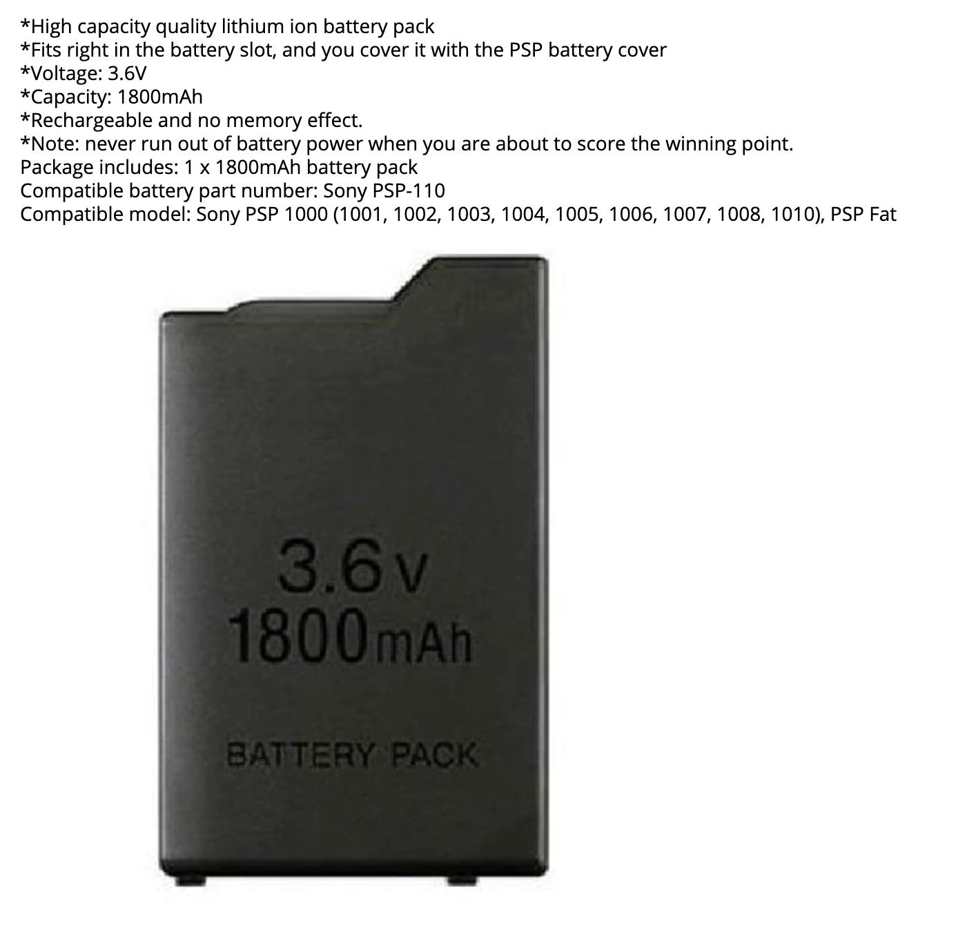 US $7.89 30% OFF|1800 mah 3.6 v 리튬 이온 충전식 배터리 팩 교체 소니 psp 1000 PSP 110 콘솔-에서배터리부터 가전제품 의 Aliexpress.com | Alibaba 그룹
