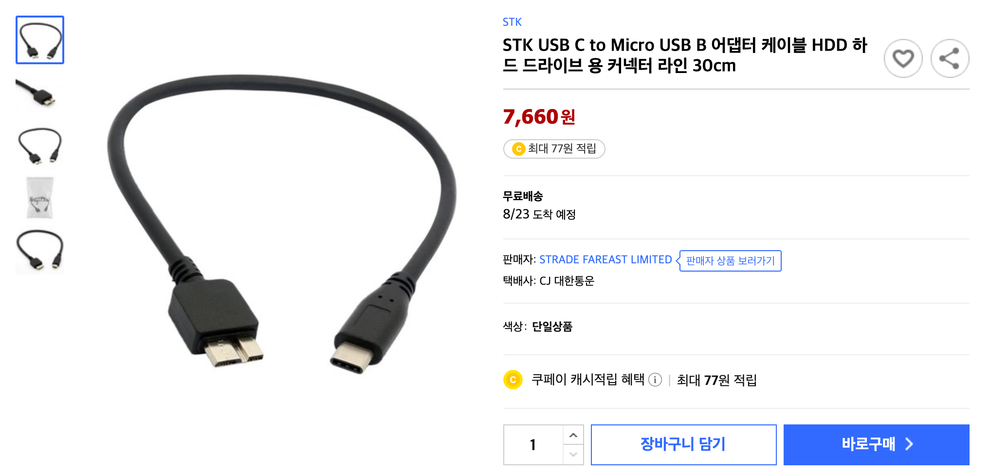 구입한 이유는 외장 HDD 를 맥북에 바로 물려서 쓰기 위한 용도입니다. 매번 쓸 필요는 없겠지만 종종 USB 허브가 전력이 부족하거나 불안정해 보이면 그냥 바로 물려서 쓰려고 합니다.