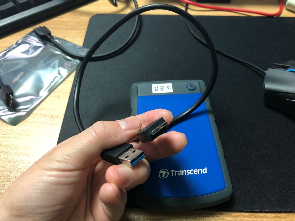 아래 사진의 케이블은 외장 HDD 구입했을때 기본으로 들어 있던 USB 3.0 A to USB 3.0 Micro B 케이블이구요.