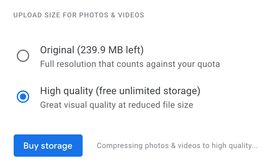 그러면 Compressing photos & videos to high quality... 라는 문구가 나타납니다.
