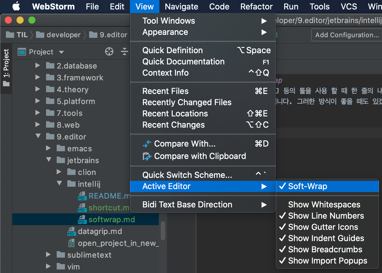 IntelliJ - 자동줄바꿈. Soft Wrap 본문