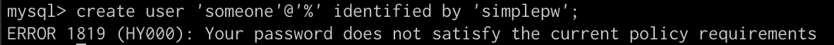 ERROR 1819 (HY000): Your password does not satisfy the current policy requirements