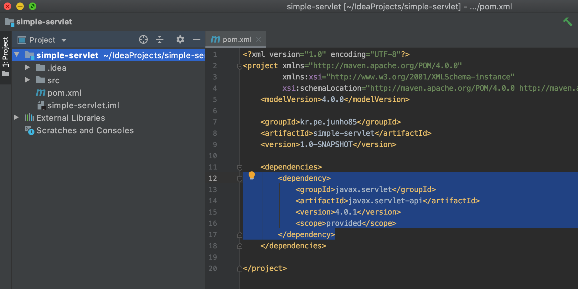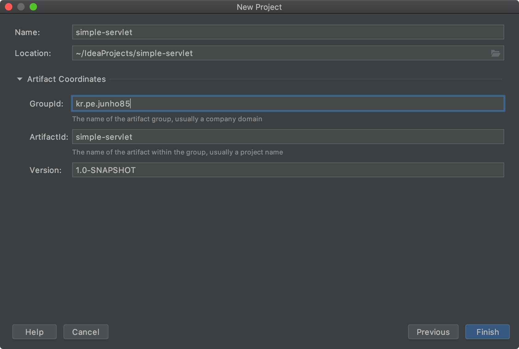 간단한 servlet 프로젝트 만들기. tomcat9, servlet4. maven, IntelliJ 본문
