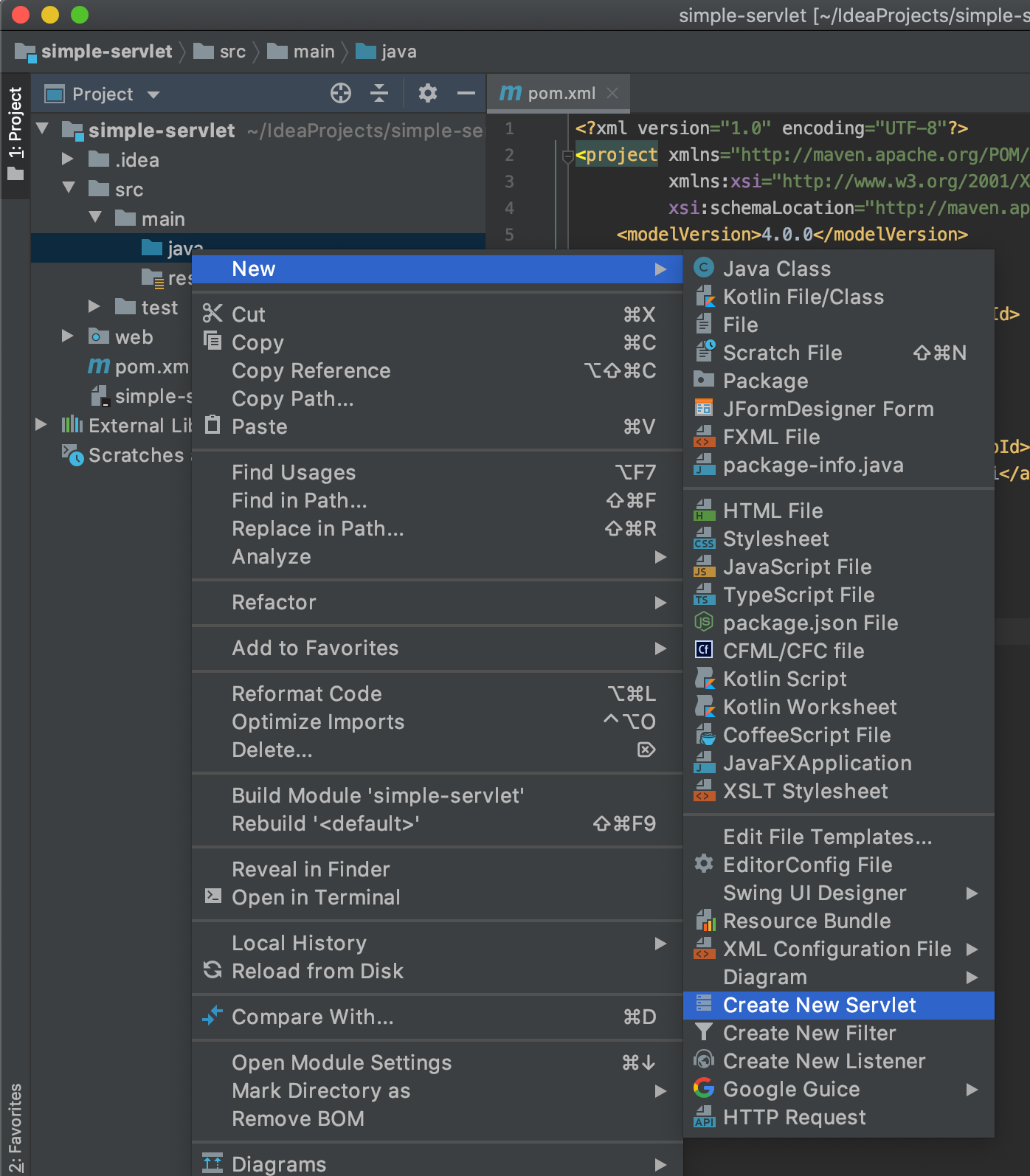 src/main/java 에 New -> Create New Servlet을 선택합니다.