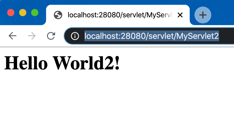 Hello World 2! 가 잘 나오는 것을 확인할 수 있습니다. 기존에 web.xml로 페이지를 작성했던 레거시 프로젝트가 있다면 단계적으로 annotation 방식으로 바꿔나가 보는 것도 괜찮아 보입니다.