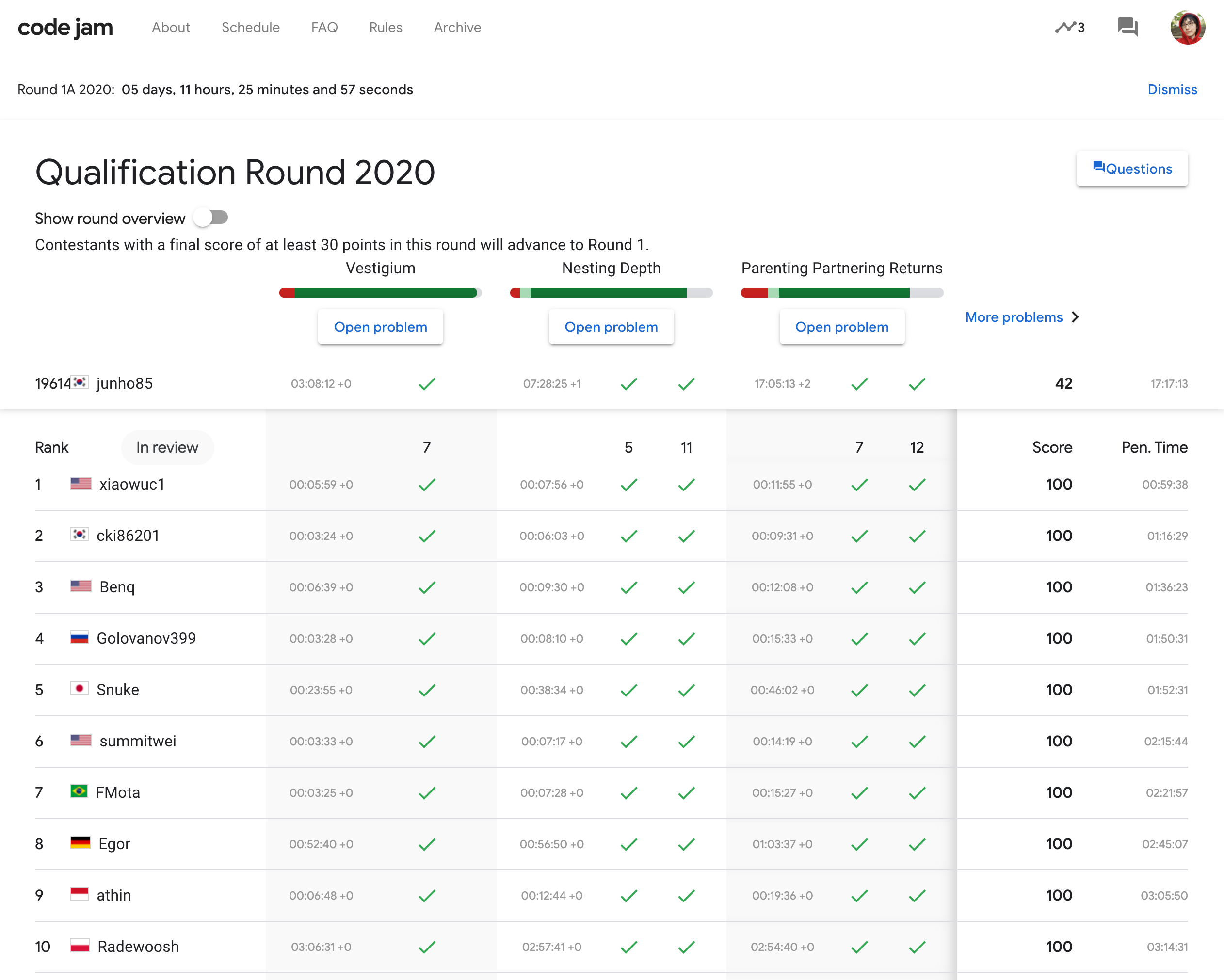 Google Code Jam 2020 Qualification Round 종료! Round 1A는 6일 후 본문