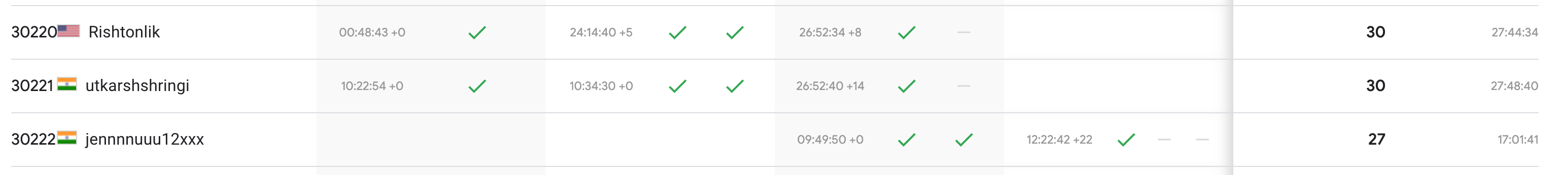 30점을 넘기면 Round 1에 참가할 수 있습니다. Round 1은 A, B, C로 나누어져 진행됩니다. 모든 라운드에 참가할 수 있으며 어느 라운드이건 1,500등 안에 들어가면 Round 2에 참가할 수 있습니다. 넉넉 잡아도 4,500등 안에는 들어가야 하는데요. 2만 등 가까운 저는 무진장 공부하는 방법 밖엔 없겠습니다. 조금이라도 합격 확률을 높이려면 1A부터 다 참가해보는 방법 밖엔 없겠습니다.