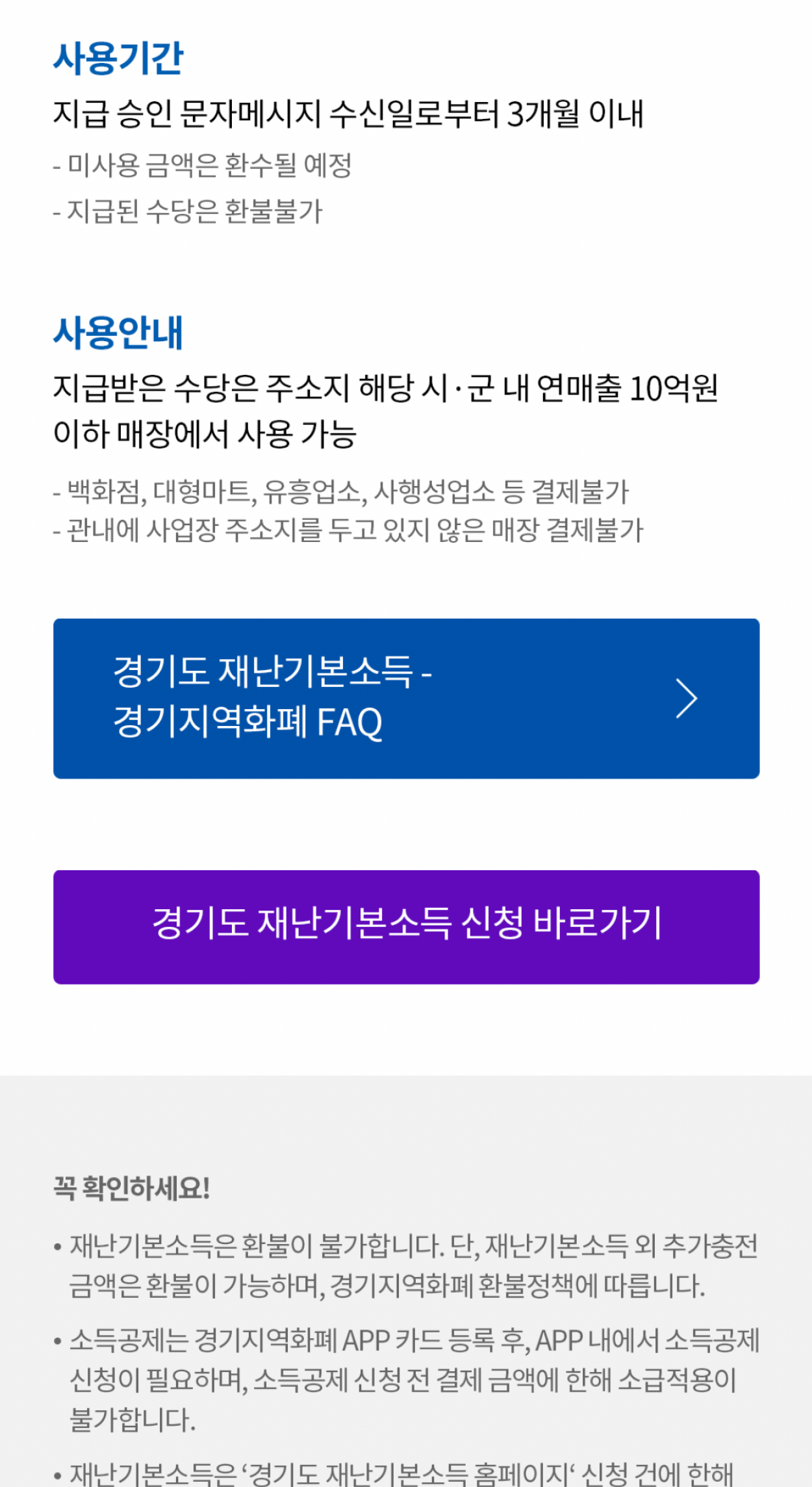 같은 경기도라도 시와 군에서 재난 기본소득을 별도로 지급하는 경우가 있는데요. 해당 시와 군의 재난 기본소득도 같이 신청된다고 하네요.