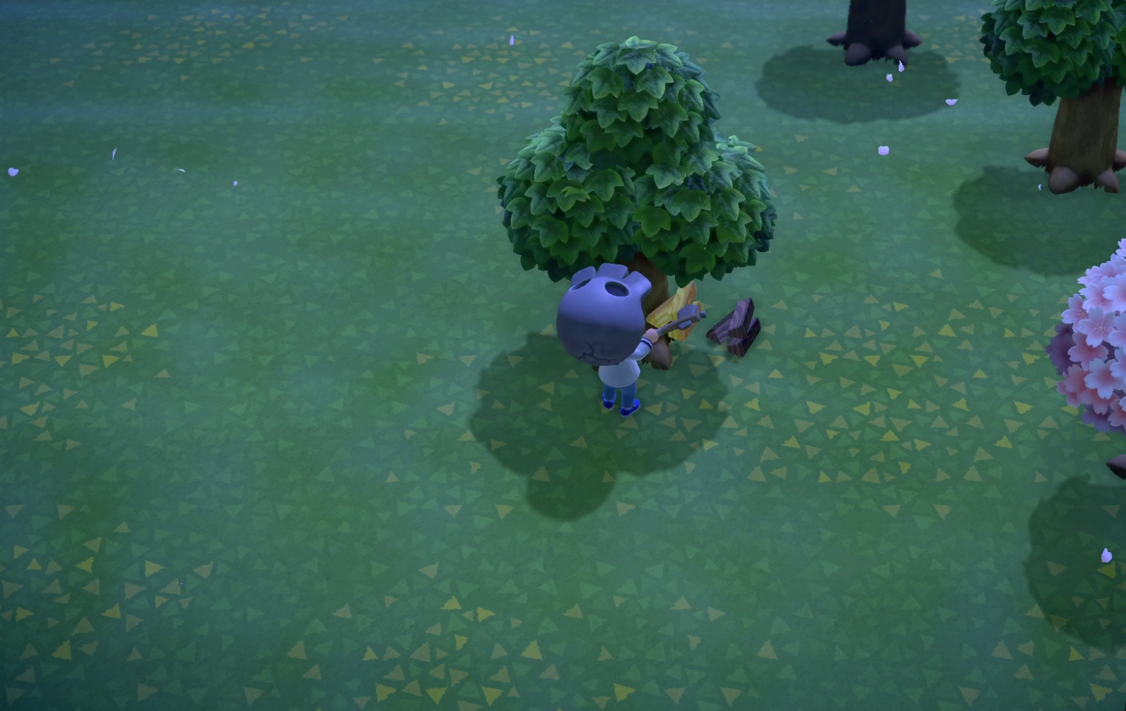 나무 앞에 서서 A를 누르면 나무를 흔듭니다. 흔들다 보면 나뭇가지가 떨어집니다. 안 떨어질 때도 있고 일정량이 떨어지고 나면 한동안은 잘 안 떨어지기도 합니다. 하지만 시간이 좀 지나고 다시 흔들면 또 떨어집니다. 나뭇가지는 낚싯대나 잠자리체 등을 DIY 해서 만들 때 필요한 재료로 유용하게 쓰입니다.
