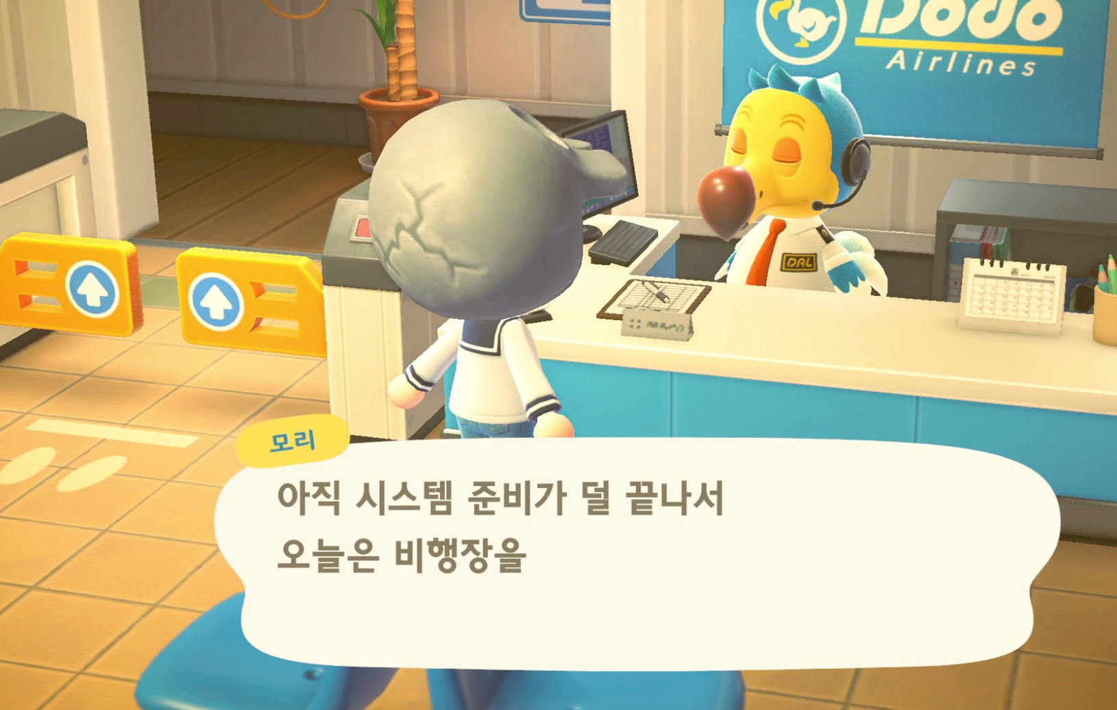 첫날은 친구들 섬에 놀러 간다거나 친구들이 도와주러 올 수 없습니다. 비행기 타러 가면 아직 오픈 준비 중이라고 합니다. 선배 플레이어들에게 아이템들을 미리 얻어서 빠르게 진행하기는 어렵겠네요.