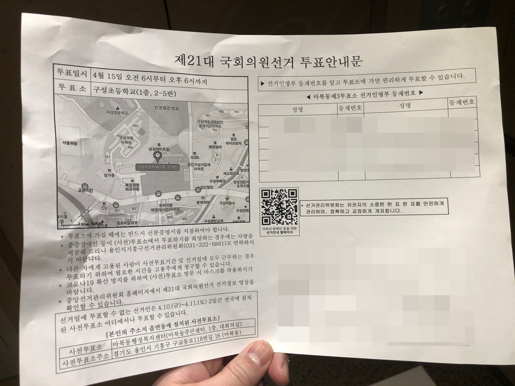코로나 19로 국회의원선거가 미뤄지는 거 아닌가 했었지만 정상적으로 치러졌네요. 저도 오늘 투표를 하고 왔습니다.