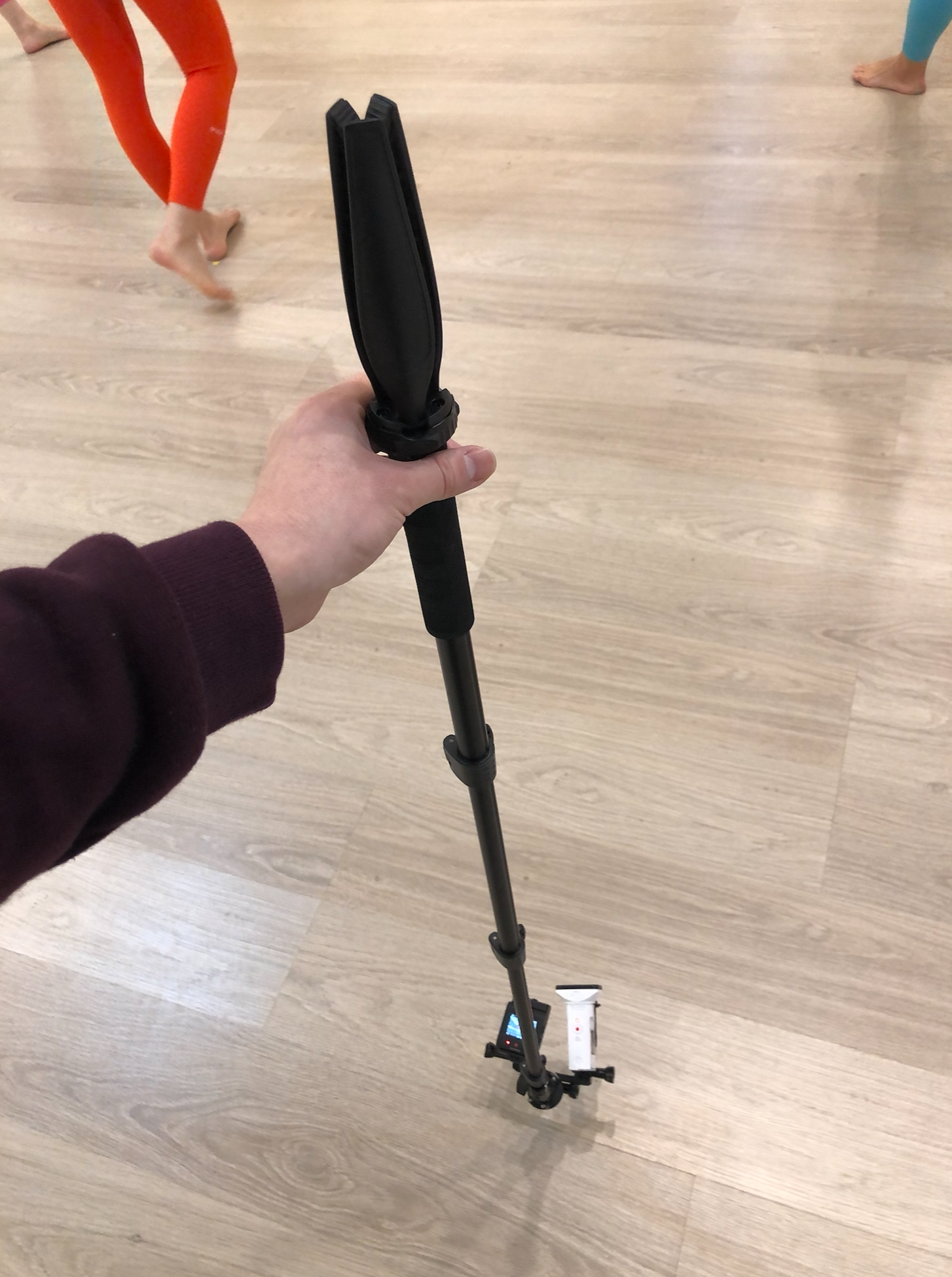사다리 타고 올라가서 모노포드에 연결해서 팔을 쭈욱 뻗어서 촬영했습니다. 아래 사진처럼 연결해서 돌아다니면서 촬영했습니다.