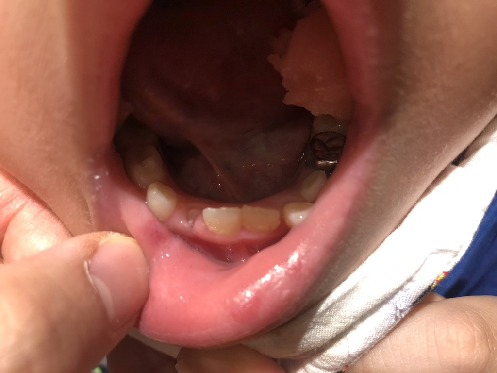 부러진 게 맞긴 하는데 평소 흔들리던 이가 빠진 거더군요. 그런데 이빨 뿌리가 한쪽이 부러져서 박혀 있는 상태였습니다. 미끄럼틀을 올라가다가 넘어지면서 손잡이 부분에 부딪혔다고 하네요. 별로 놀라지도 않고 아프지도 않았는지 놀이터에 있던 아주머니한테 떡도 얻어먹고 있었다고 하네요. 크게 다친 건 아니긴 하지만 참 겁이 없다고 해야 하나 이 와중에 떡까지 먹고 있다니 좀 황당했습니다.