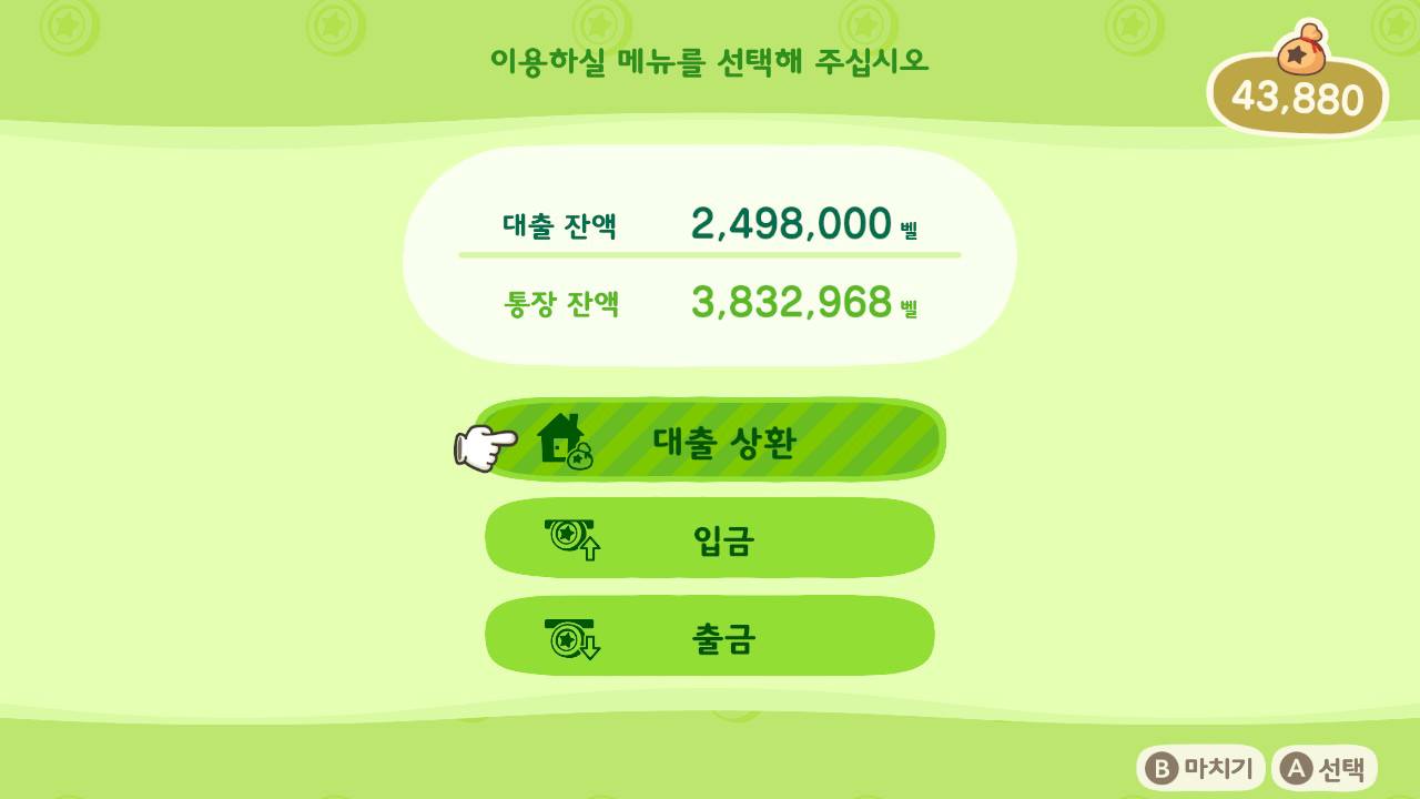 모이세요 동물의 숲을 한지도 꽤 오래되었네요. 드디어 마지막 대출금 상환을 앞두고 있습니다. 하지만 빨리 갚는다고 특별히 좋은 점이 별로 없어서 조금 미루고 있습니다. 이번 글에서는 대출과 집 증축에 대해서 정리해 봅니다.