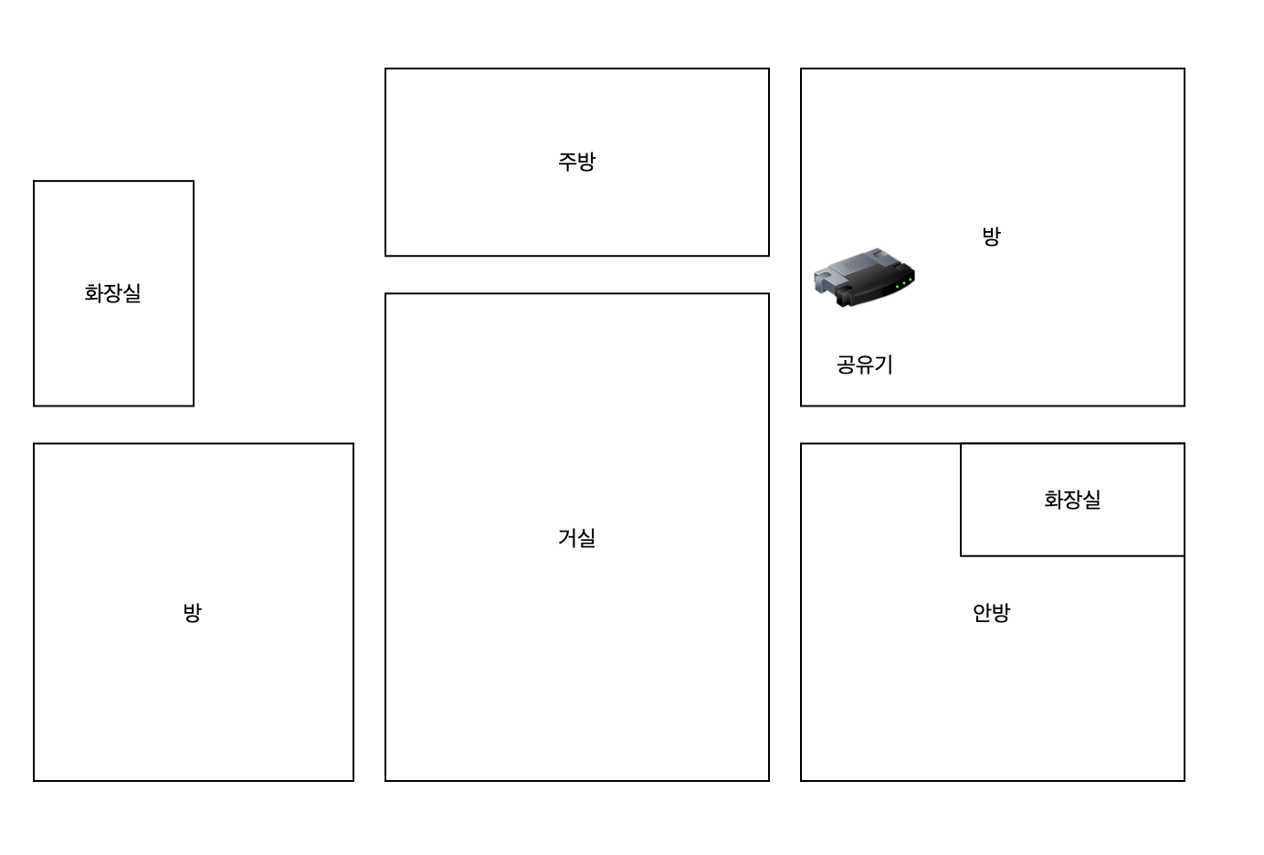 대충 그려본 집의 구조와 공유기 위치입니다.
