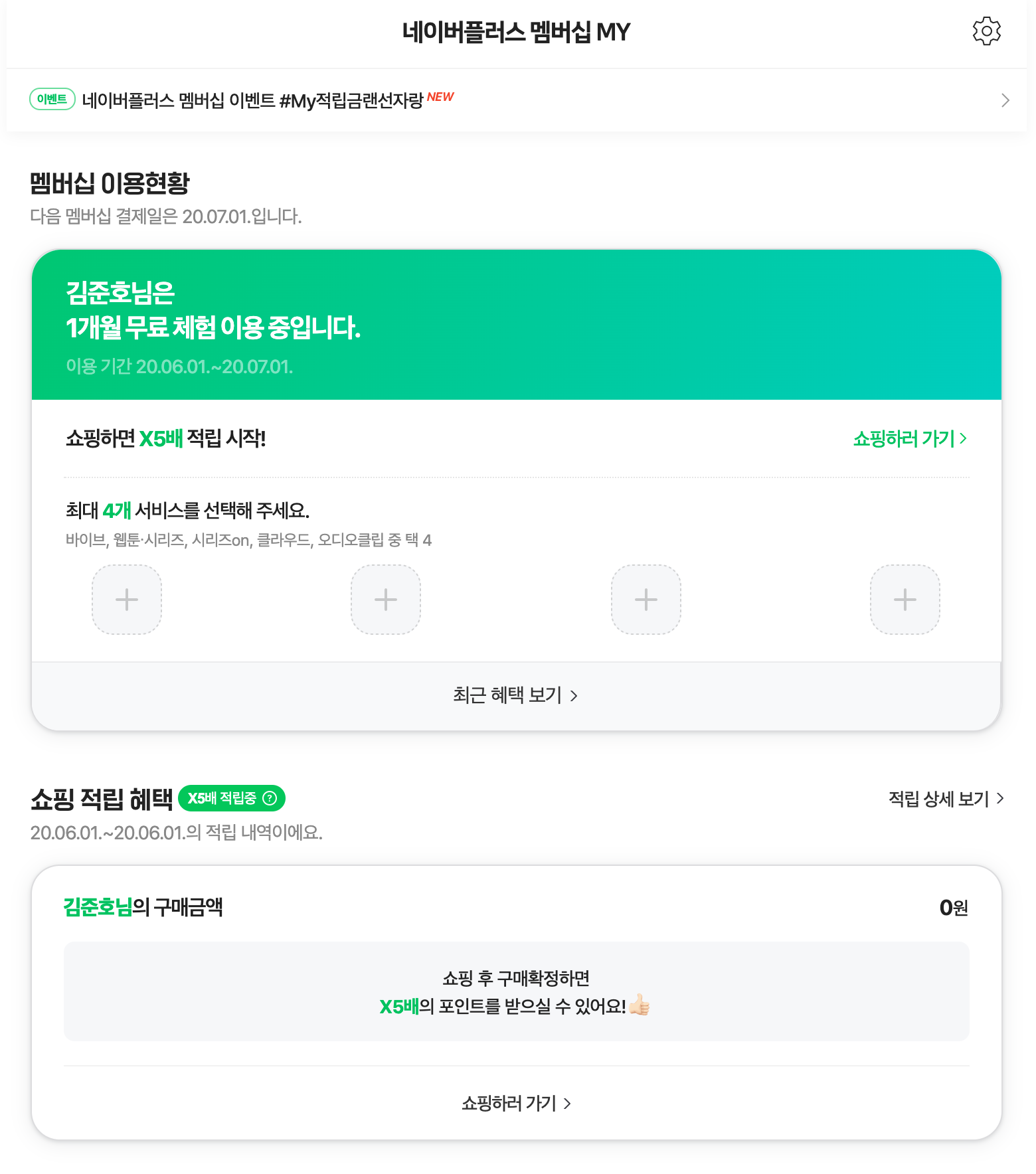 오늘 드디어 네이버 플러스 멤버십이 시작되었습니다.