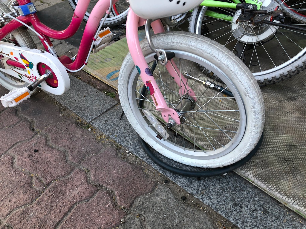 둘째가 타는 자전거이고 앞바퀴 바람이 빠졌는데 바람을 넣어줘도 순식간에 다시 바람이 빠졌습니다.