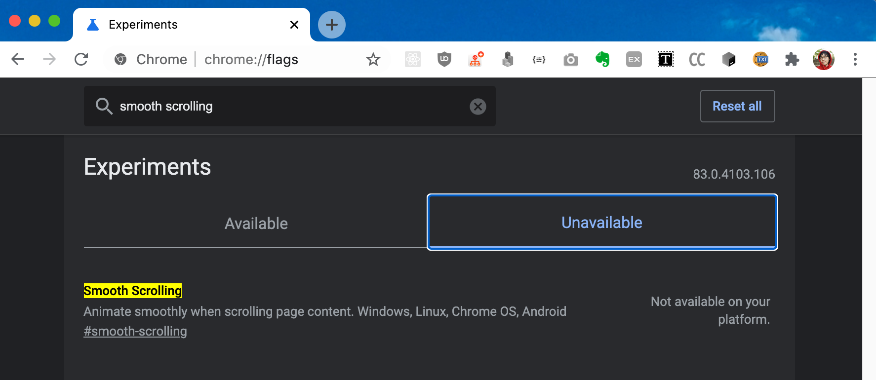 크롬에서는 그런 것을 보완하기 위해서 인지 Smooth Scrolling이라는 실험 기능을 제공하고 있습니다.
