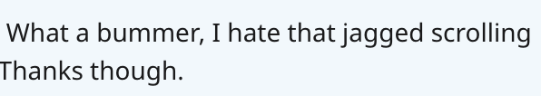 검색하다 보니 영어로 딱딱하게 스크롤링되는 것을 jagged scrolling이라고도 표현하는 게 같네요.