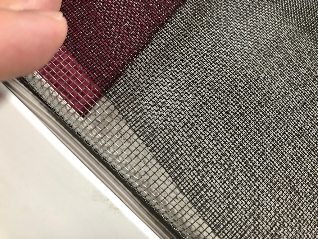 뒤쪽에 은색이 기존 방충망이고요. 아마 철이나 알루미늄 재질 일 것 같습니다. 튼튼하긴 한데 덜 촘촘하다 보니 작은 벌레들이 틈 사이로 많이 들어왔습니다. 이번 방충망은 이전보다 더 촘촘합니다. 한밤중에 방충망만 닫아두고 이틀 정도 사용 중인데요. 아직까지는 벌레가 들어오는 거 같지 않습니다. 방충망 교체 작업하면서 물구멍 쪽도 남은 방충망으로 대충 붙여서 막았는데요. 그 효과도 좀 있을지도 모르겠습니다.