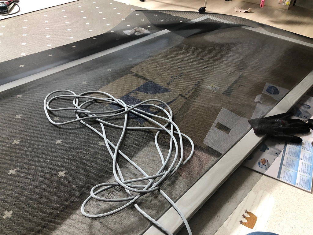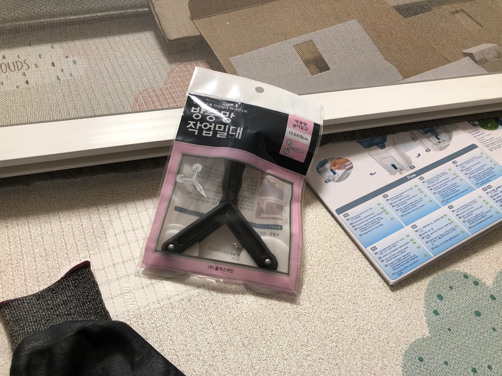 새 방충망을 올려 보니 사이즈가 넉넉하더군요. 좀 더 큰 사이즈의 창문도 사용 가능할 거 같습니다. 새 고무패킹도 저렇게 들어 있습니다.