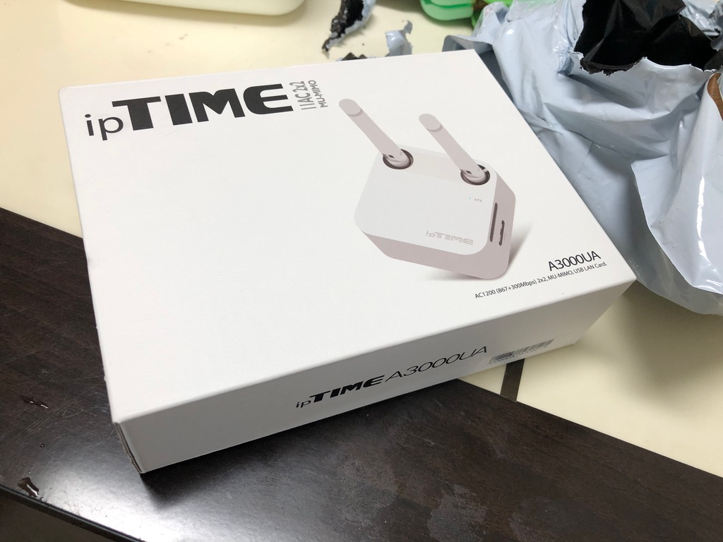 ipTIME의 A3000UA입니다. 2017년에 출시된 제품이고 802.11AC까지 지원합니다. 요즘 공유기에서 5G 붙어 있는 거도 사용이 가능하다는 의미입니다.