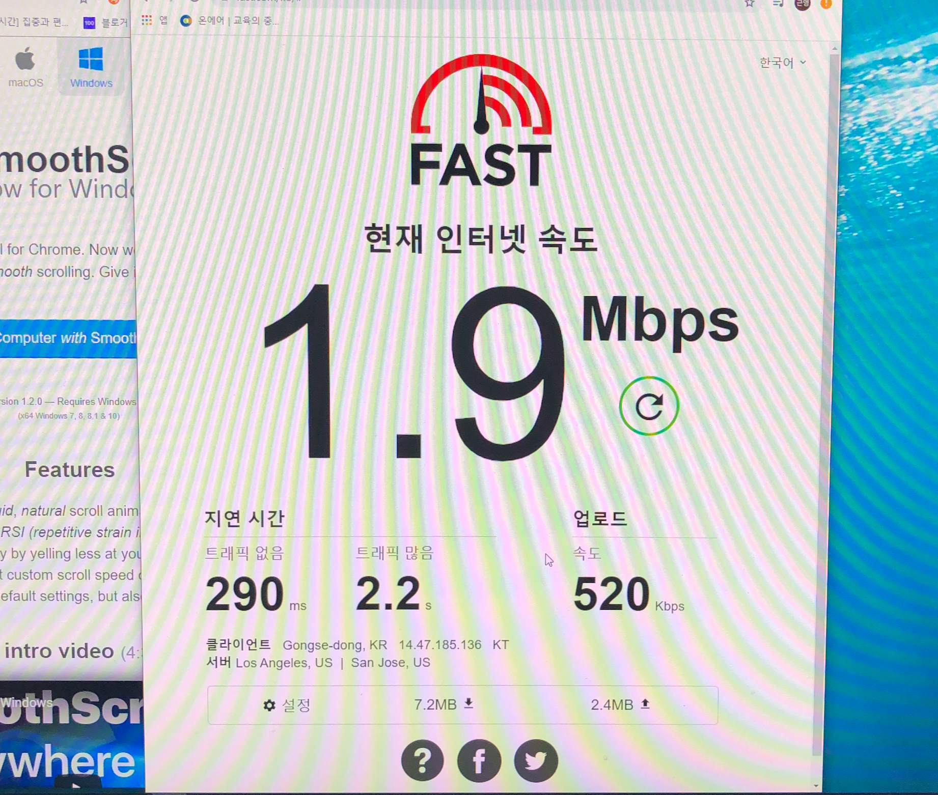 공유기가 있는 방에서 맥북프로에서는 48 Mbps 정도가 나오고요.