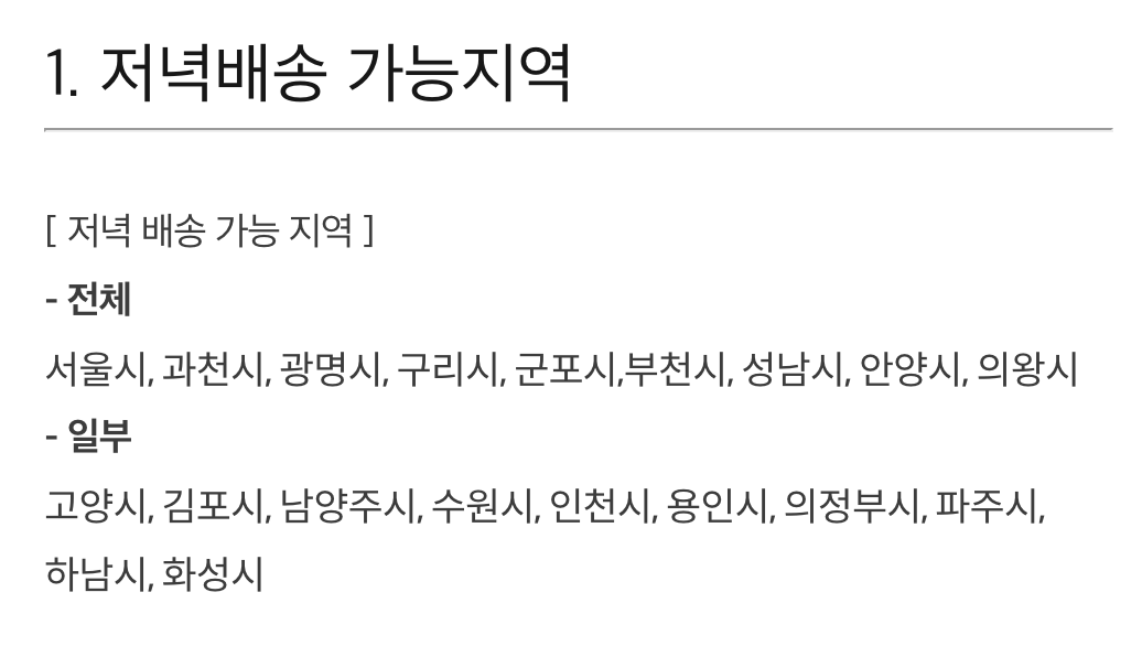 오후 3시까지 주문하면 당일 저녁 7시 전까지 배송해 줍니다. 지금 글 쓰는 시간이 밤이라 오늘은 배송이 안되고 내일로 나옵니다. 저는 어제 미리 주문했었습니다.