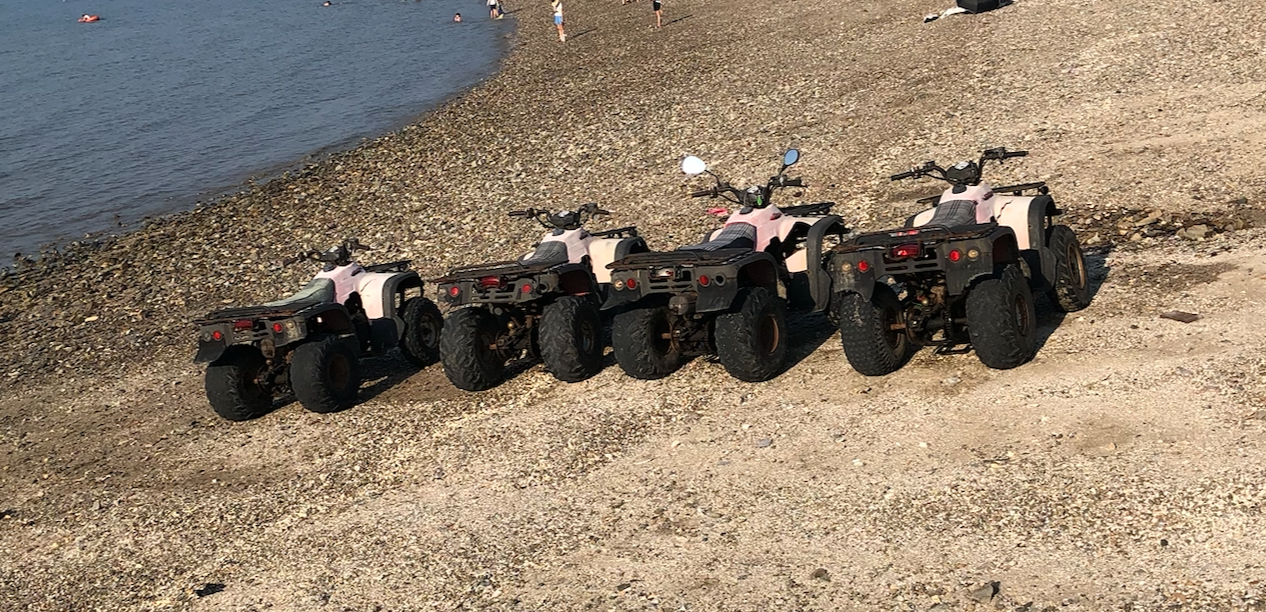 가운데에 ATV(all-terrain vehicle)를 탈 수 있는 거 같더라고요. 오른쪽 해변을 왕복하며 탈 수 있습니다.