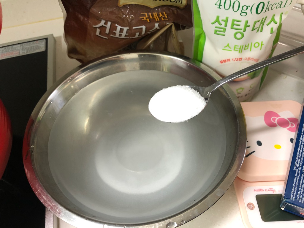 일단 스테비아도 영상처럼 4 숟갈 넣고 잘 저어줍니다.