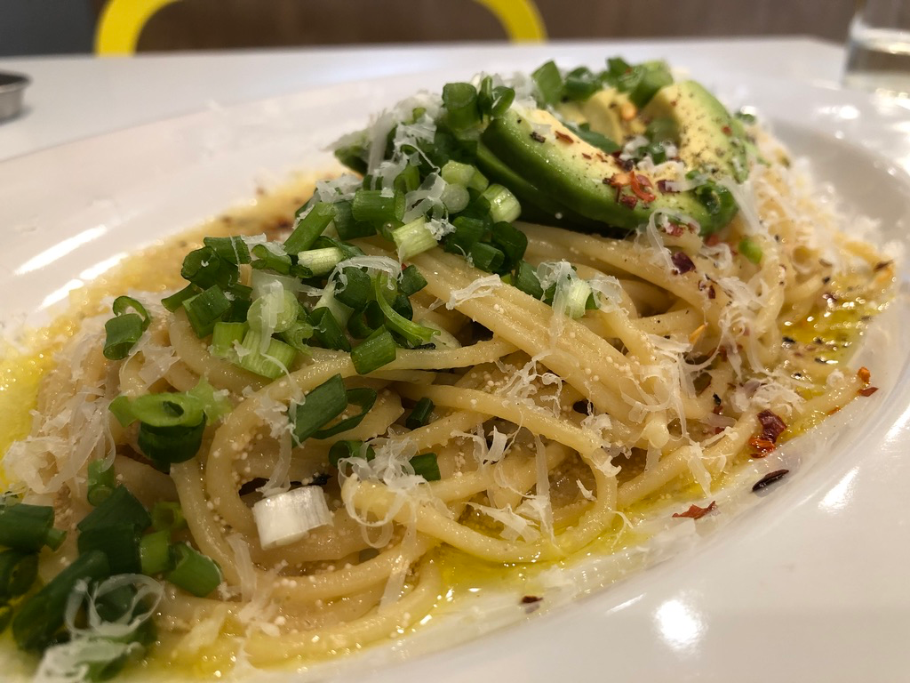 아보카도 명란 오일 파스타입니다. 개인적으로 아보카도나 명란이나 둘 다 친근한 음식은 아닌데요. 먹어 보니 명란의 맛이 올라오지만 부담스럽지 않고 기름지면서도 짭짤한 맛이 조화를 이루었습니다.