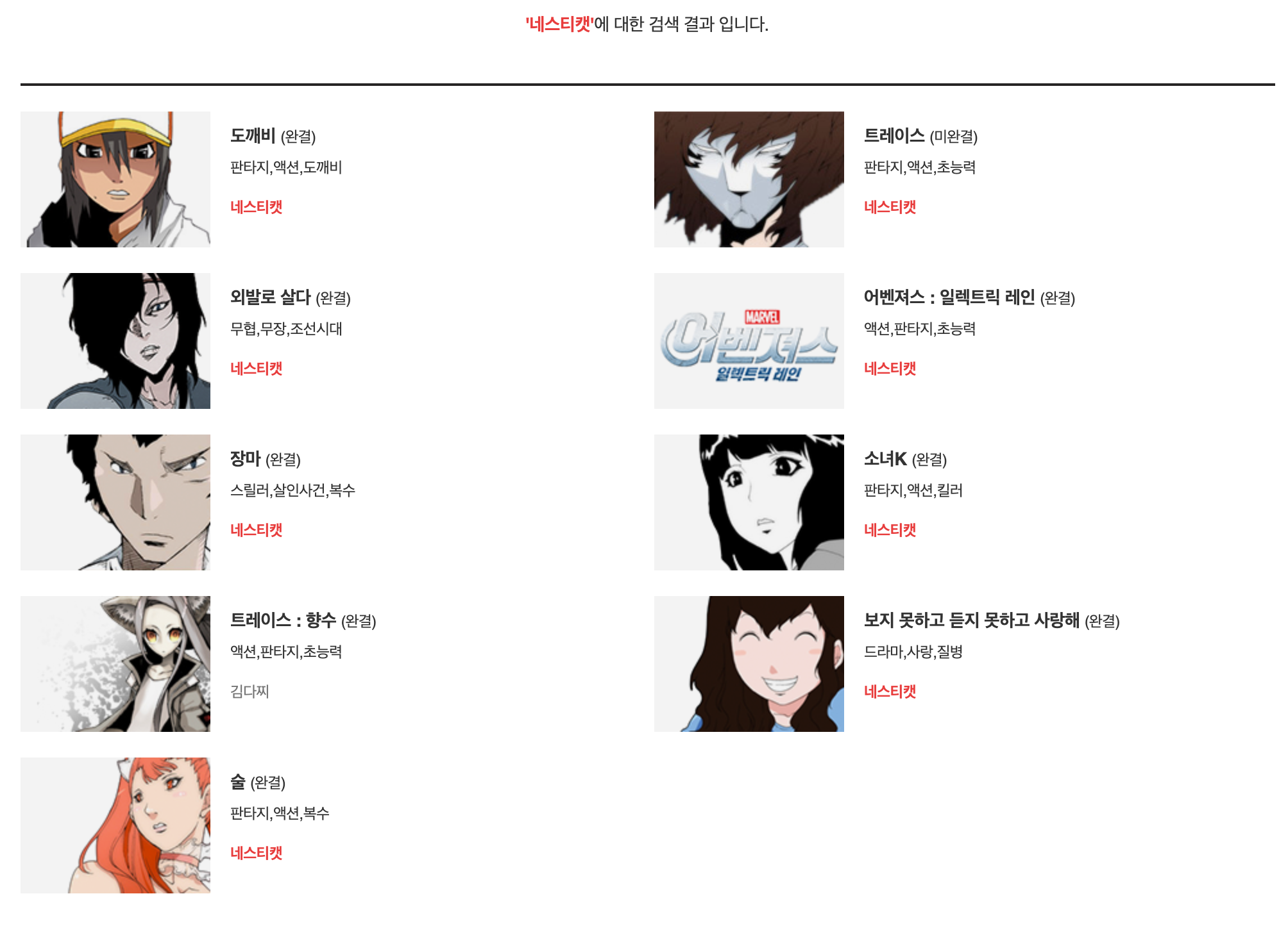 어렴풋이 도깨비라는 작품이 떠오를 듯 말 듯합니다. 2006년이니 트레이스보다 먼저 연재했었네요.