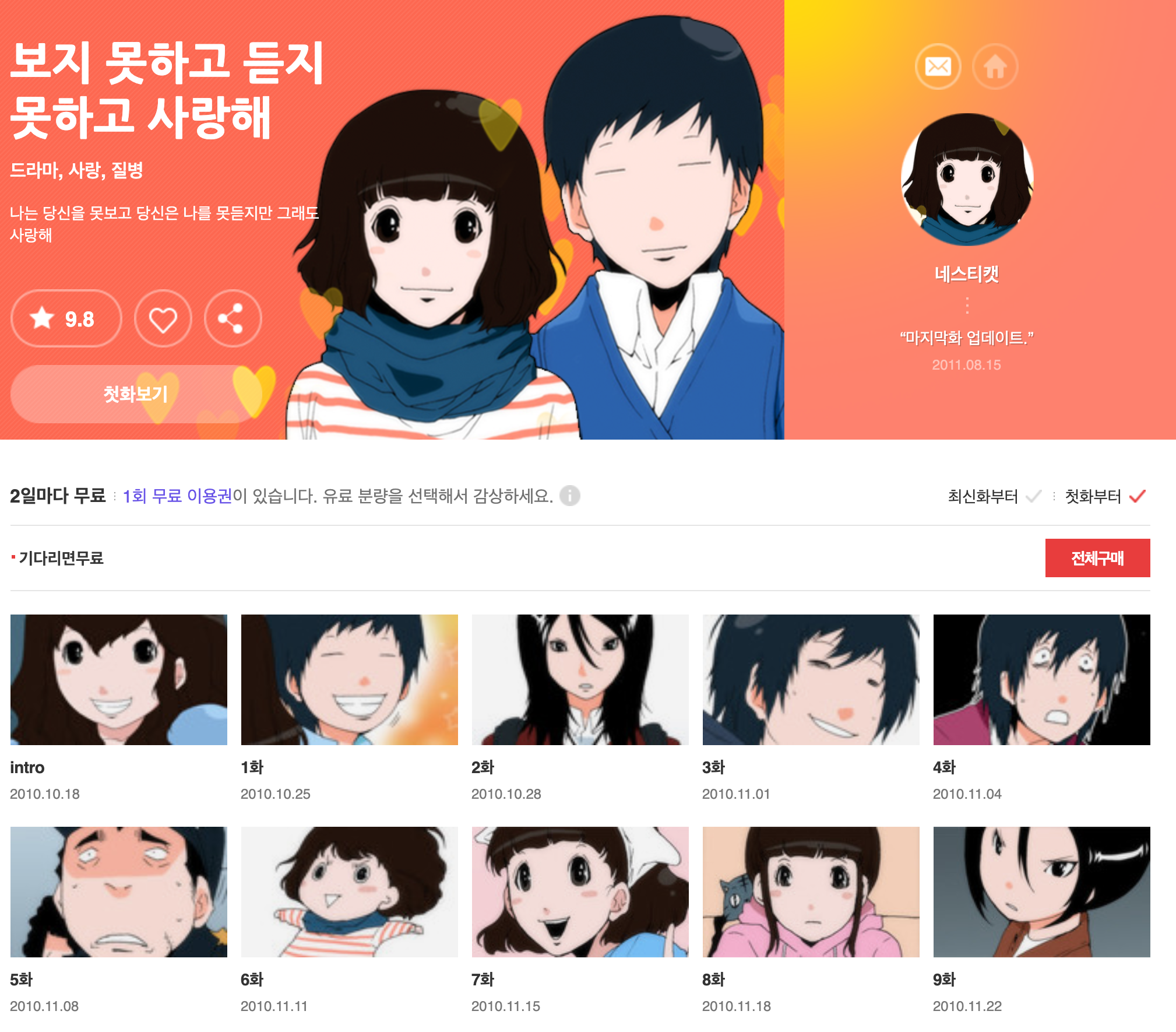 아마도 다음웹툰에서 가장 장수 연재하고 있는 웹툰이 아닐까 싶습니다. 과거 회차들을 확인 해 보니 무려 2007년부터 연재되고 있었네요.