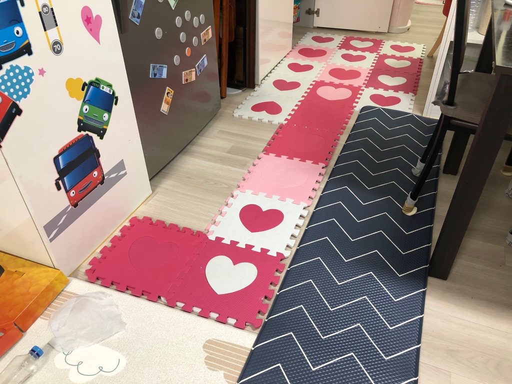 하지만 이 정도로 층간소음이 해결되지는 않겠죠. 이후에도 아랫집에서 층간소음 클레임은 들어왔습니다 ㅠㅠ 아이들 보고 주의해서 걸으라고 계속 주의를 주고 있긴 하지만 쉽게 고쳐지지는 않습니다.