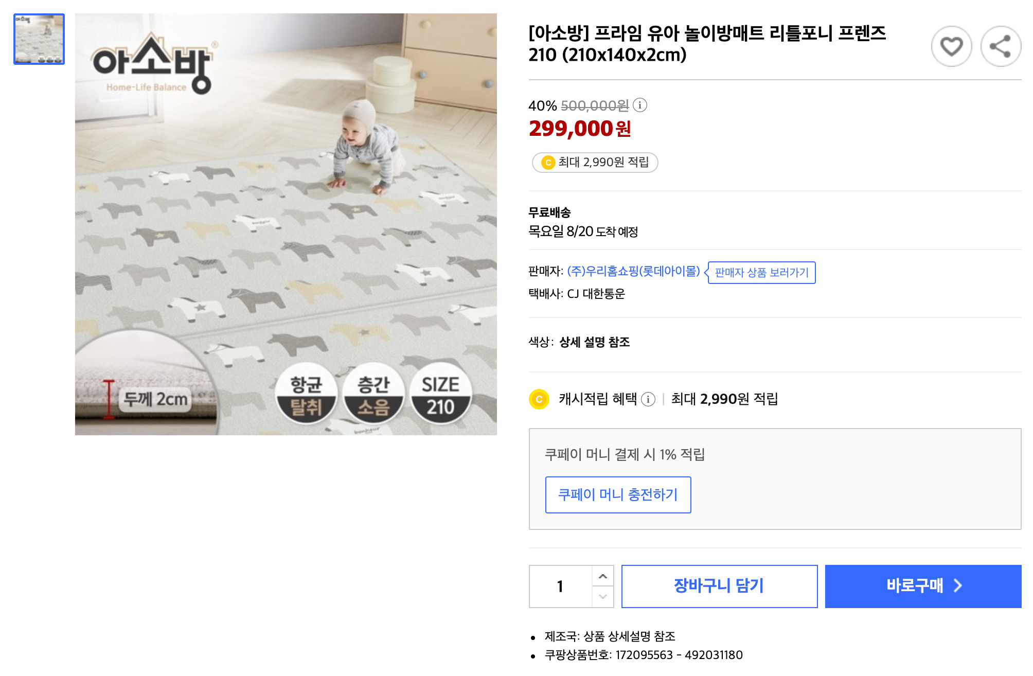 아소방 브랜드는 파크론에서 제조하는 제품이네요. 종종 마트에서 파크론 매트들 저렴하게 파는 것들이 보이긴 하는데 아소방은 좀 고급 브랜드인가 봅니다.