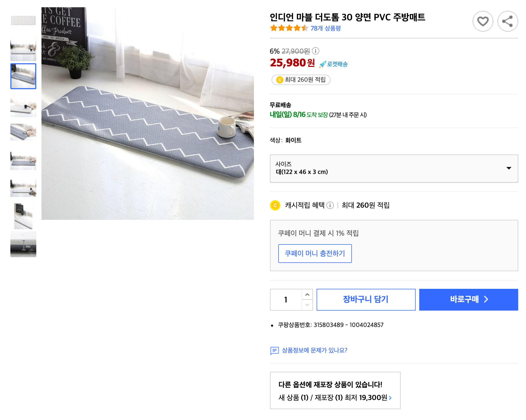 다른 제품들도 잠깐 알아보았지만 다시 이마트 트레이더스에서 구입해 온 매트로 돌아옵니다. 왜냐하면 저는 이미 이마트 트레이더스에서 판매하는 주방 매트를 두장 더 사 왔거든요. 더 두툼한 제품들이 흥미가 가긴 하지만 두께를 제외한 면적으로 치면 이 제품만 한 제품도 잘 없을 겁니다.