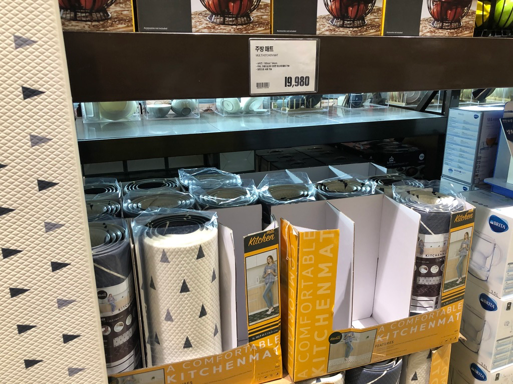 이 매트 코너에 있지 않고 주방 코너에 있습니다. 왜냐하면 이것은 주방 매트 이기 때문이죠. 하지만 습관적으로 자꾸 매트 코너 먼저 보다가 다시 찾으러 가게 되네요.