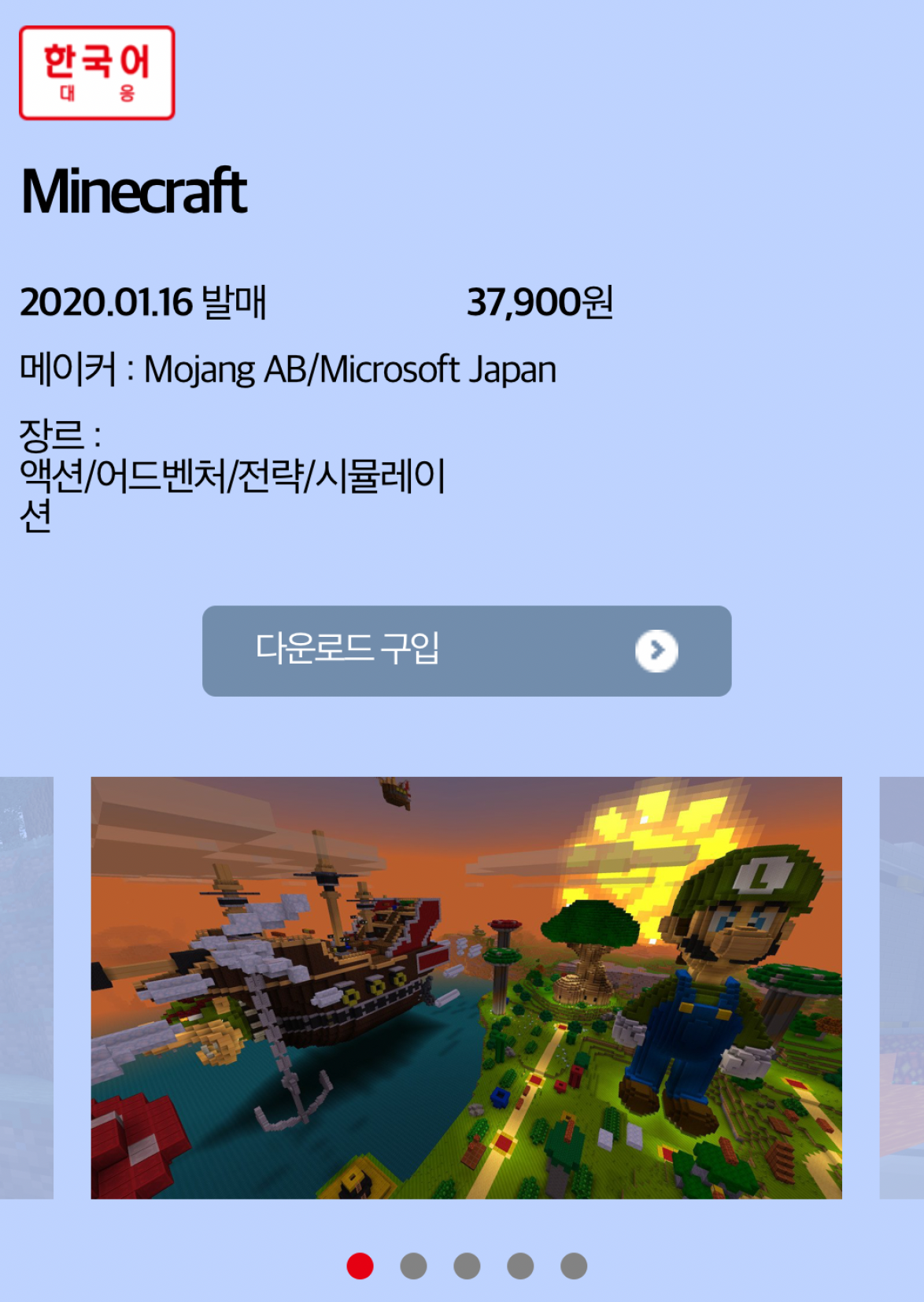 마인크래프트는 몇 년 전에 PC에서 잠깐 해 본 적이 있었는데요. 지인이 서버를 돌린다고 해서 들어가서 좀 해 보다가 별 다른 재미를 못 느껴서 몇 번 하다가 말았었습니다.
