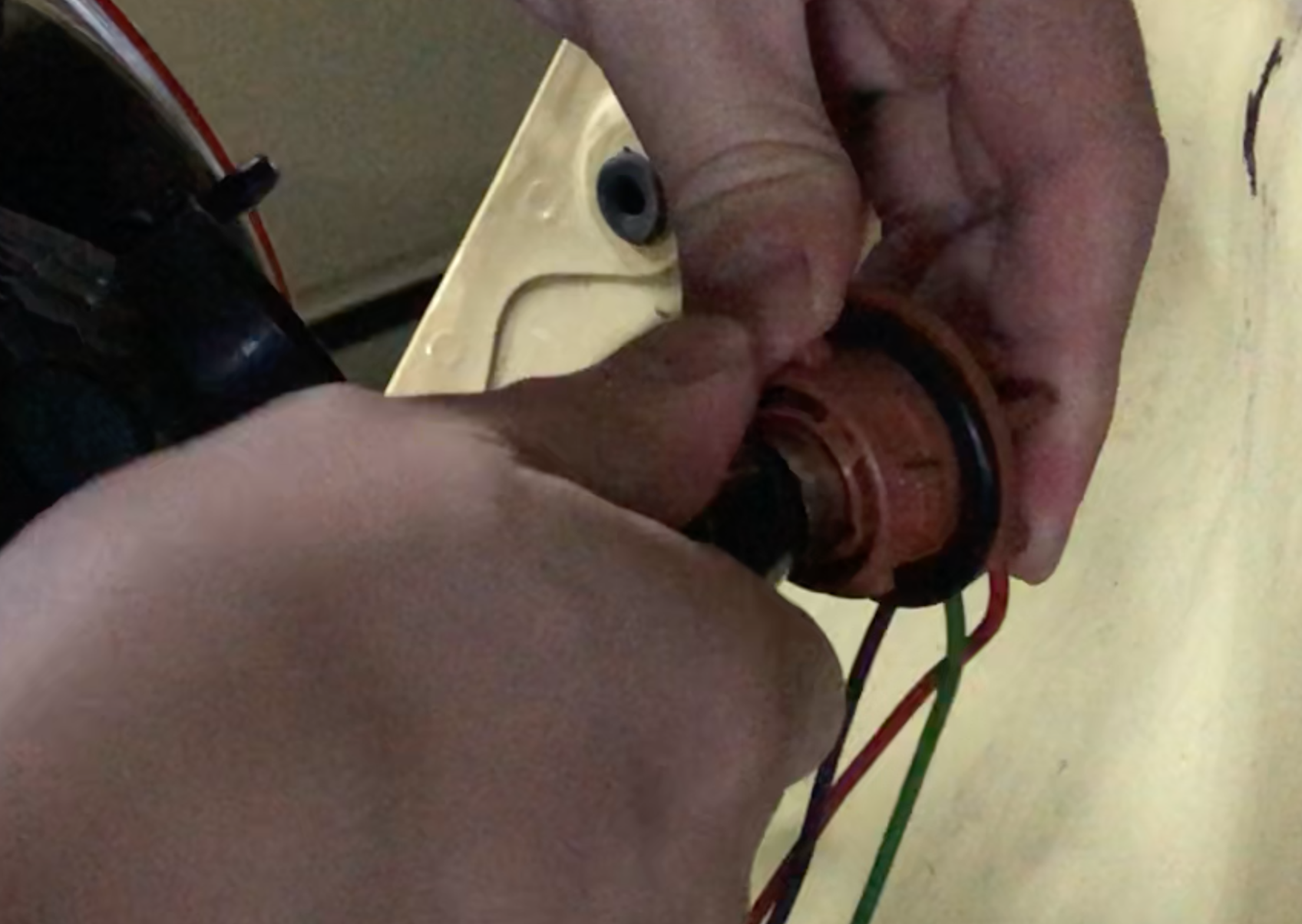 가장 위쪽에 있는 붉은색 구멍이 브레이크등을 끼우는 부분입니다. 왼쪽으로 돌리면 빠집니다.