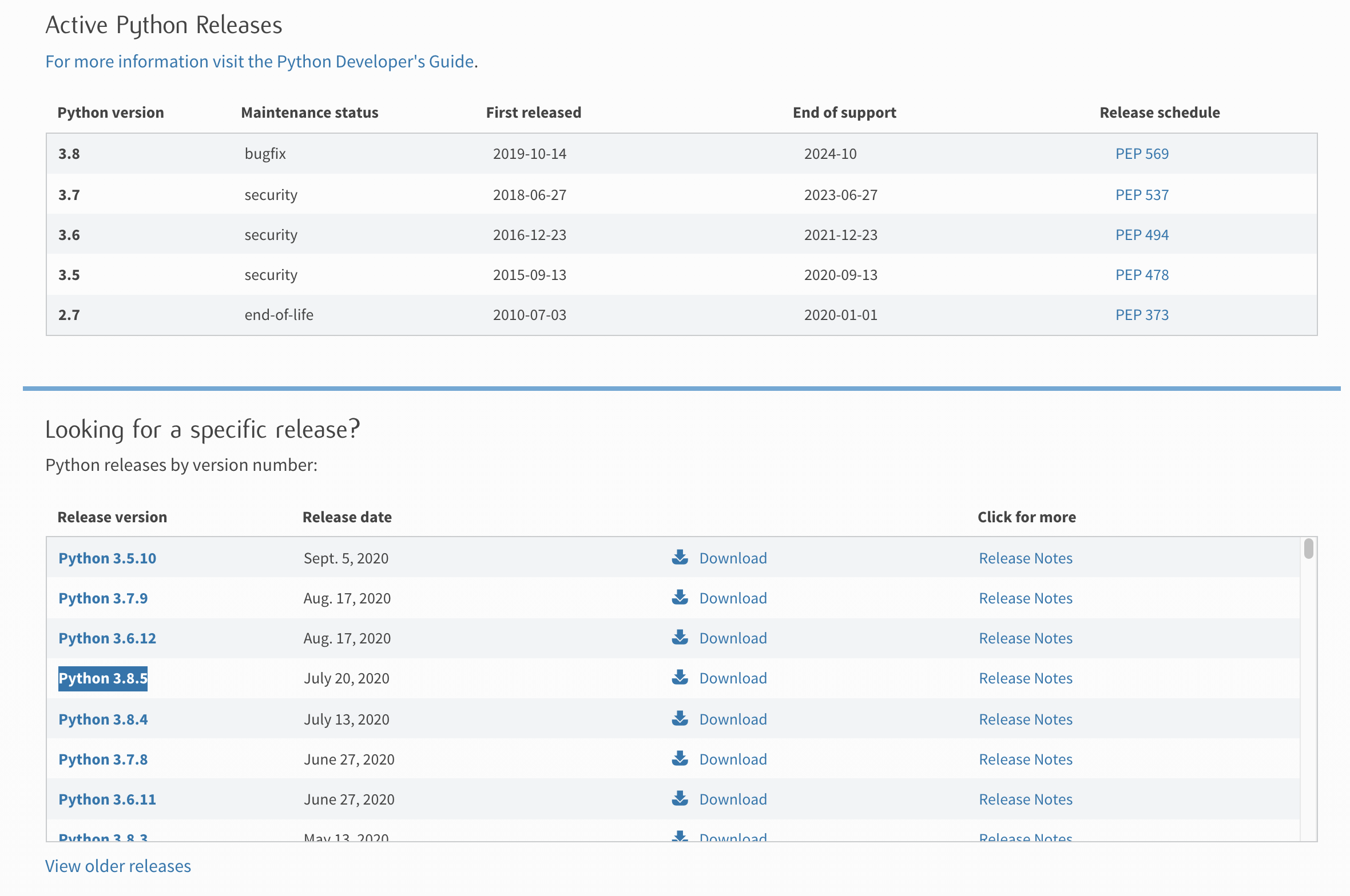 현재 가장 높은 버전인 3.8.5를 설치해 보겠습니다.