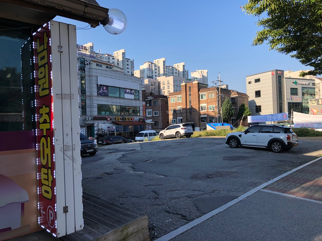 주차 공간은 꽤 넓은 편이고 아침에는 자리가 많네요.