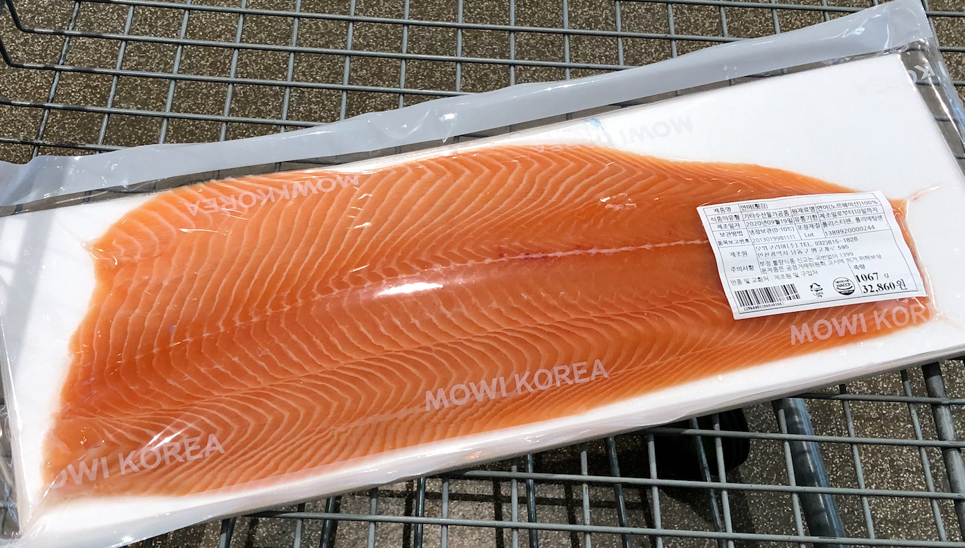 지난 주말 이마트 트레이더스에서 연어를 사 먹었습니다. 그런데 평소와 포장이 좀 다릅니다. 보통은 플라스틱 용기에 비닐랩으로 싸져 있는 형식인데 가끔 이렇게 포장되어 있는 경우가 있더군요. 연어 업체가 다른 걸까요?