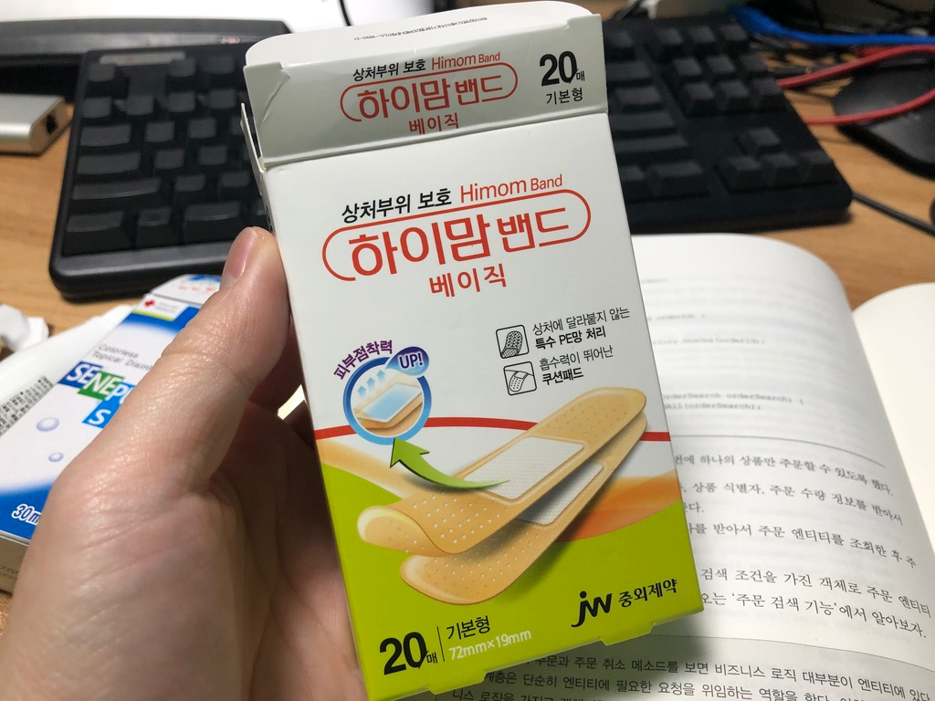 반창고 하면 대일밴드가 생각나는데요. 대일밴드는 안 보이고 하이맘 밴드라는 걸 주시더군요. 그러고 보면 최근에 하이맘 밴드를 많이 본 거 같습니다.