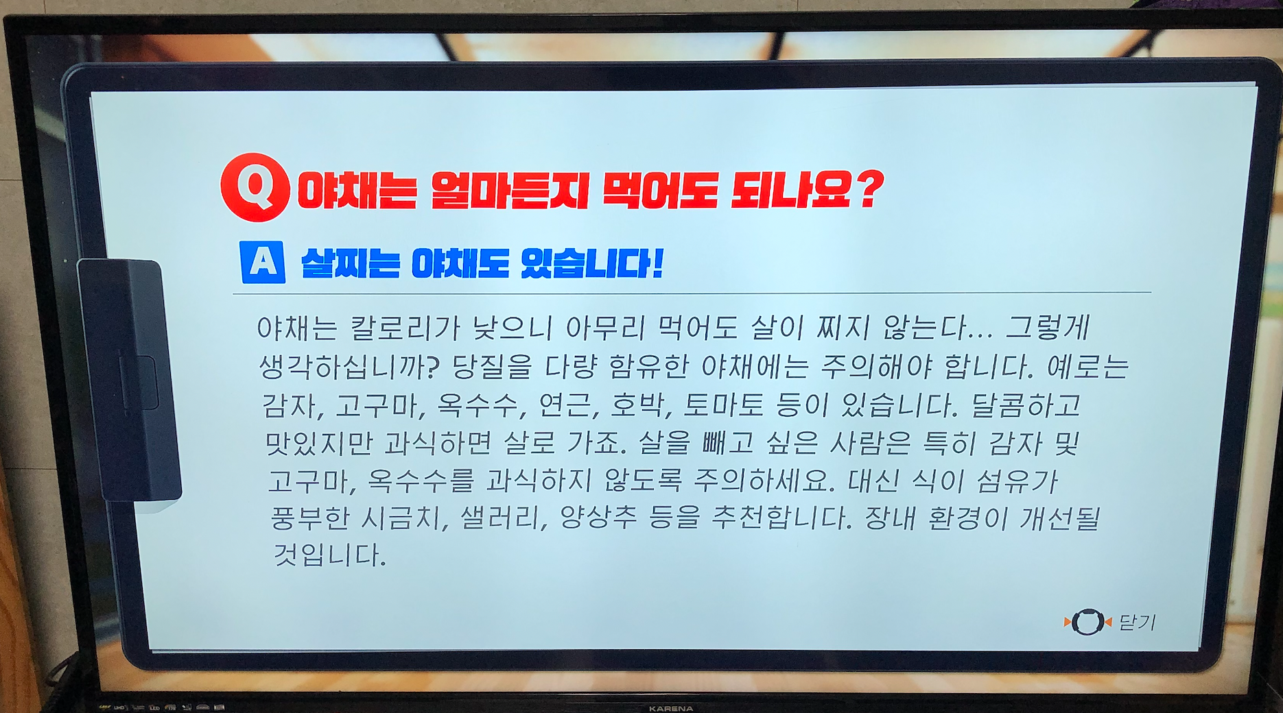 스트레칭이 끝나면 토막 상식을 알려줍니다. 가끔 퀴즈도 내곤 합니다.