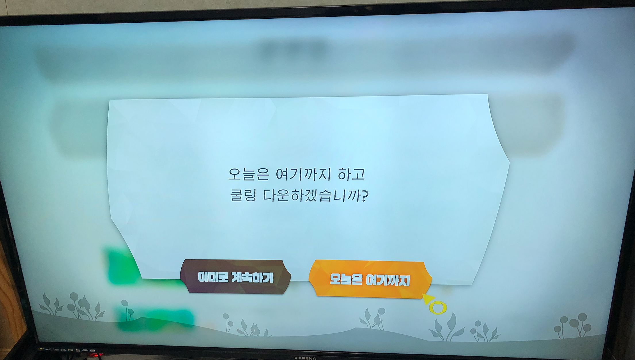 10분 단위로 운동을 하고 나면 쉴 거냐고 물어봅니다. 실제 운동 시간이 10분이지 중간중간 스토리 진행하는 부분은 운동시간으로 카운트되지 않습니다.