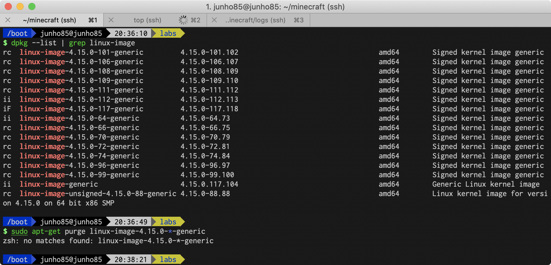 가상서버호스팅에 apt-get 으로 패키지를 설치 하려니 또 /boot 파티션 용량이 부족하다고 뜨네요. 이게 몇번째인지... 하지만 예전엔 서버가 안올라 와서 고객센터의 도움을 받기도 했는데 이제는