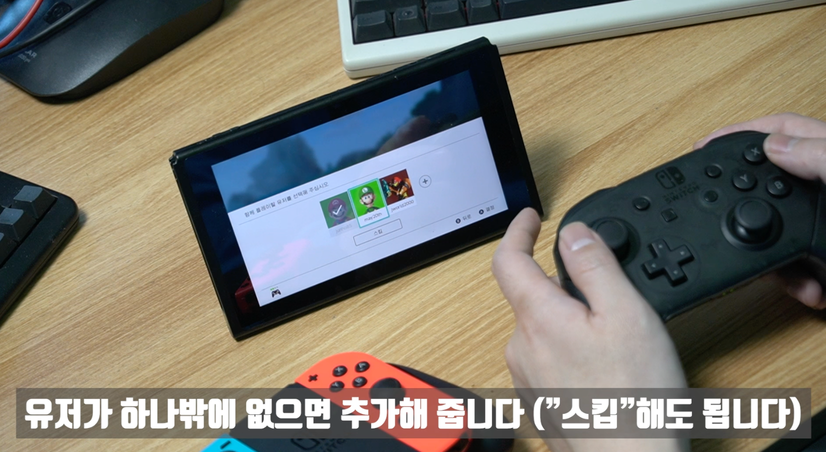 유저를 추가해도 되고 스킵해도 됩니다. 유저를 추가해서 하는 게 좋습니다. 유저마다 개별 인벤토리가 생기거든요. 닌텐도 어카운트와 연동을 할 필요는 없습니다.