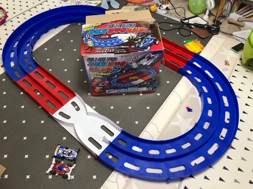 일단 미니카를 가지고 놀려면 트랙을 설치해야 되는데 트랙을 매번 새로 깔아야 되는 번거로움이 있었고요. 그냥 항시 깔아 두고 사용하면 좋은데 그럴만한 공간은 없었습니다 ㅠㅠ