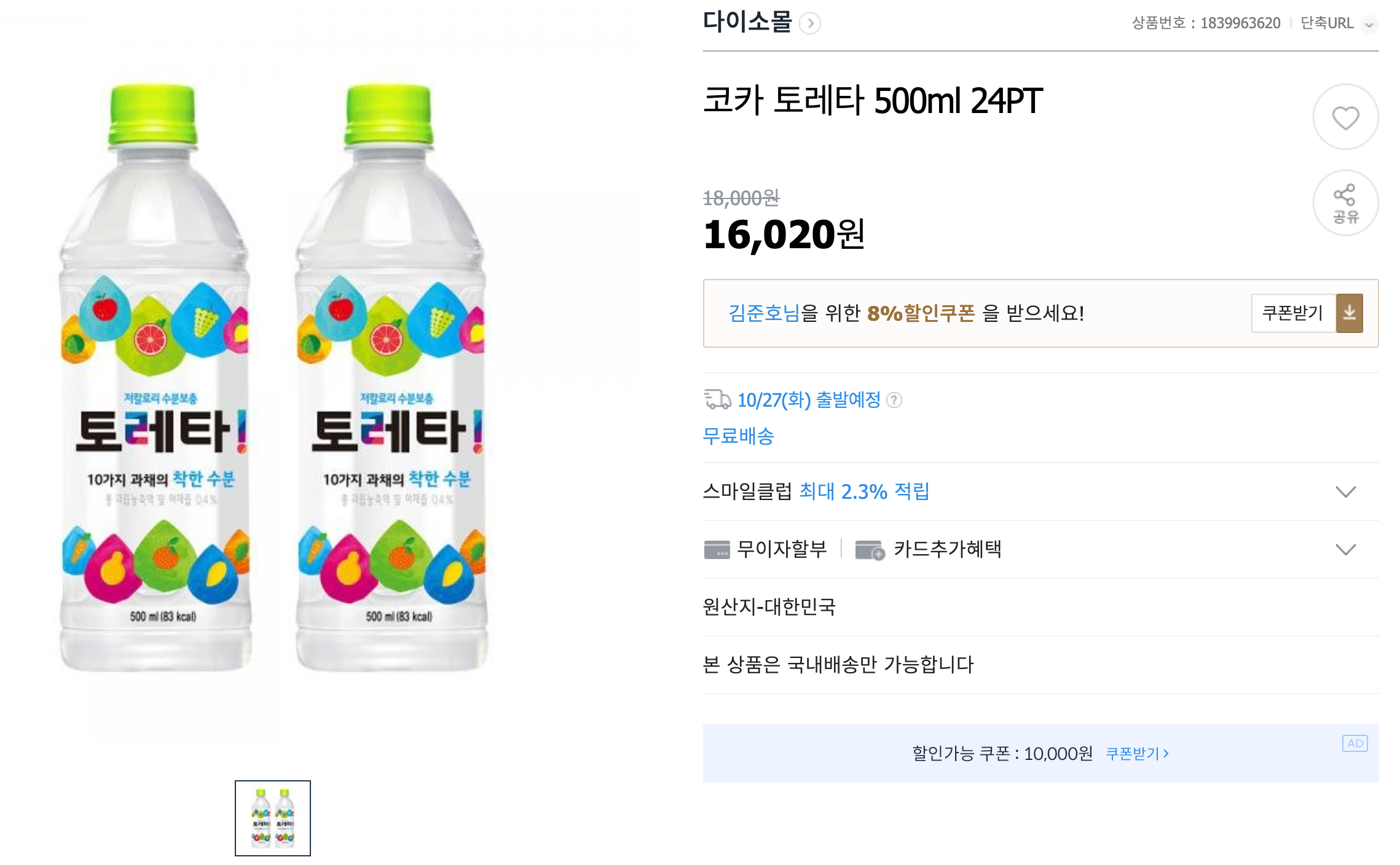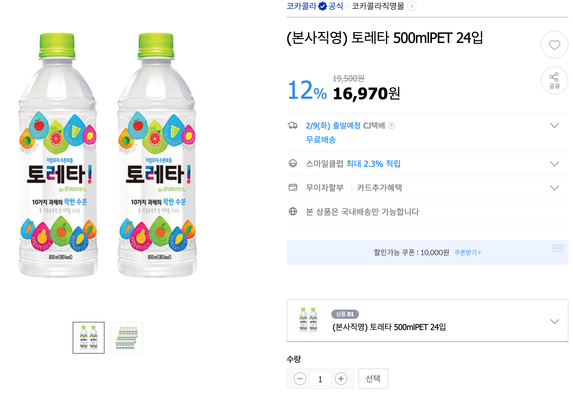 코카콜라 공식 직영몰이라니 여기보다 더 저렴하게 팔기도 쉽지는 않을 거 같네요.